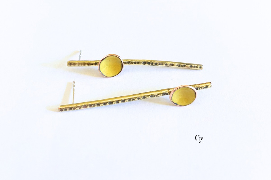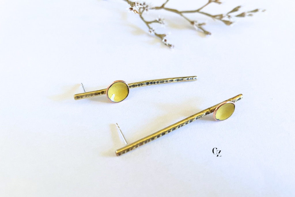 Aszimmetrikus minimalista sárgaréz fülbevaló tűzzománc díszítéssel