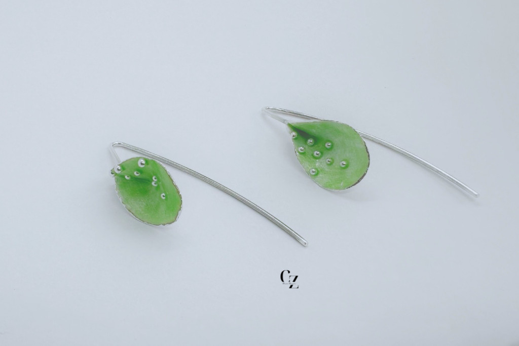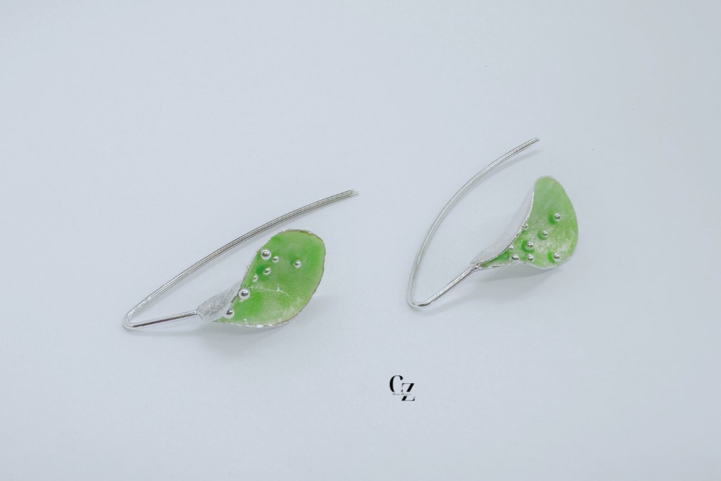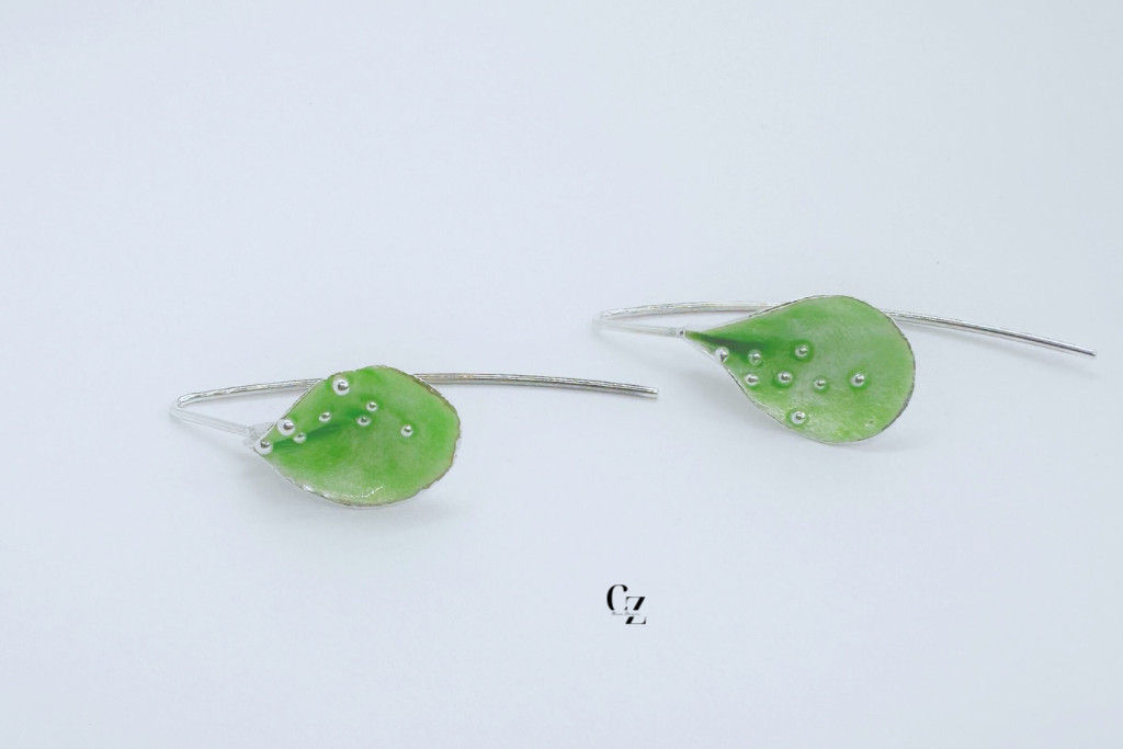 Bubble Bloom akasztós fülbevaló levél forma világos zöld