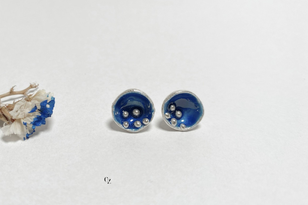 Bubble Bloom beszúrós fülbevaló sötét kék