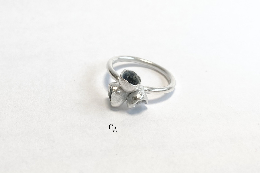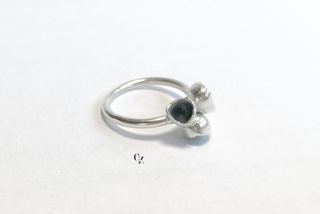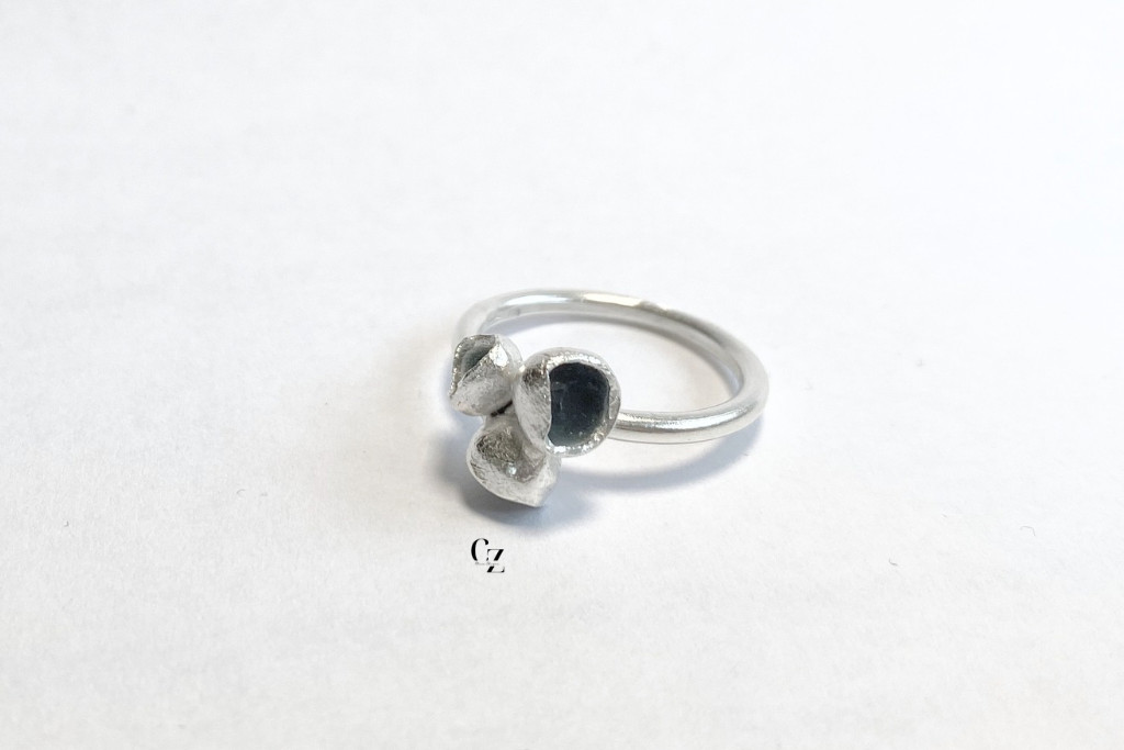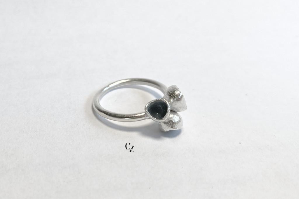 Bubble Bloom gyűrű sötétszürke tűzzománccal , virág(16.8 mm)