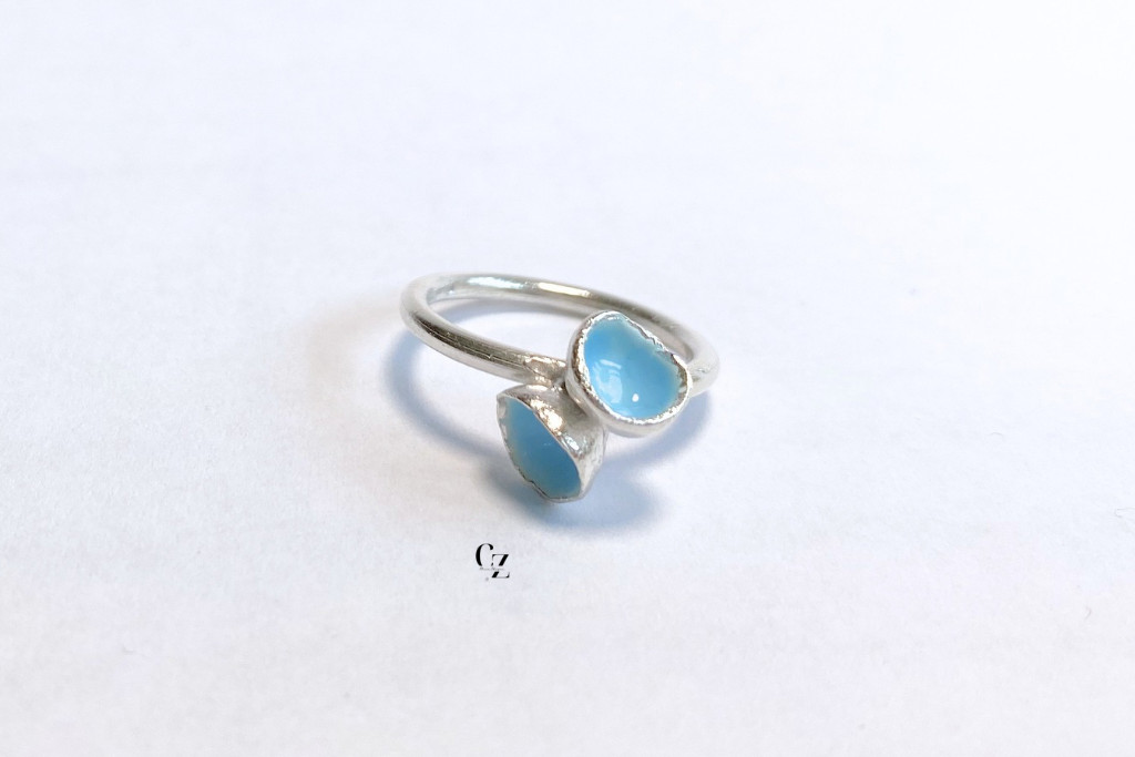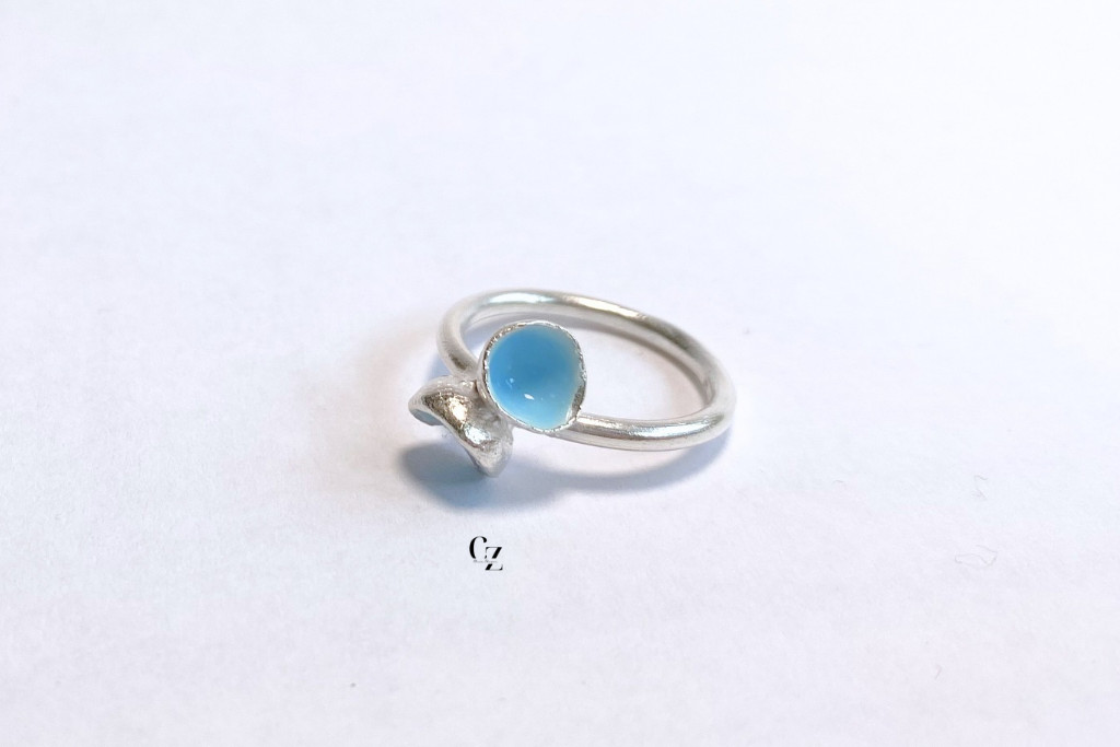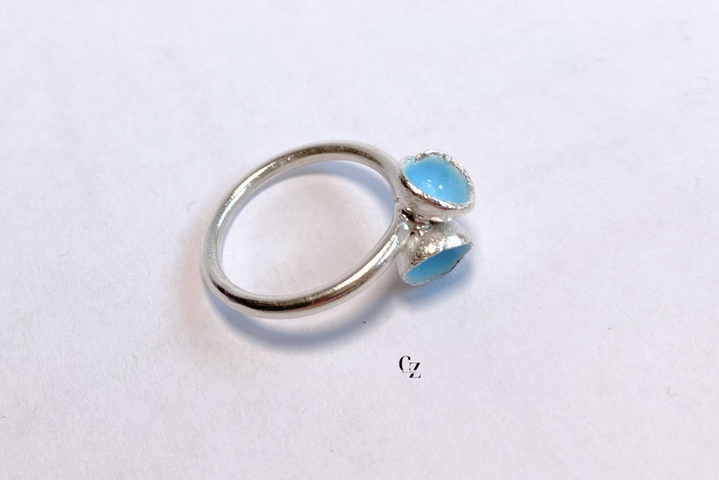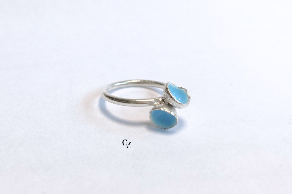 Bubble Bloom gyűrű világoskék tűzzománccal , virág(16, 5 mm)