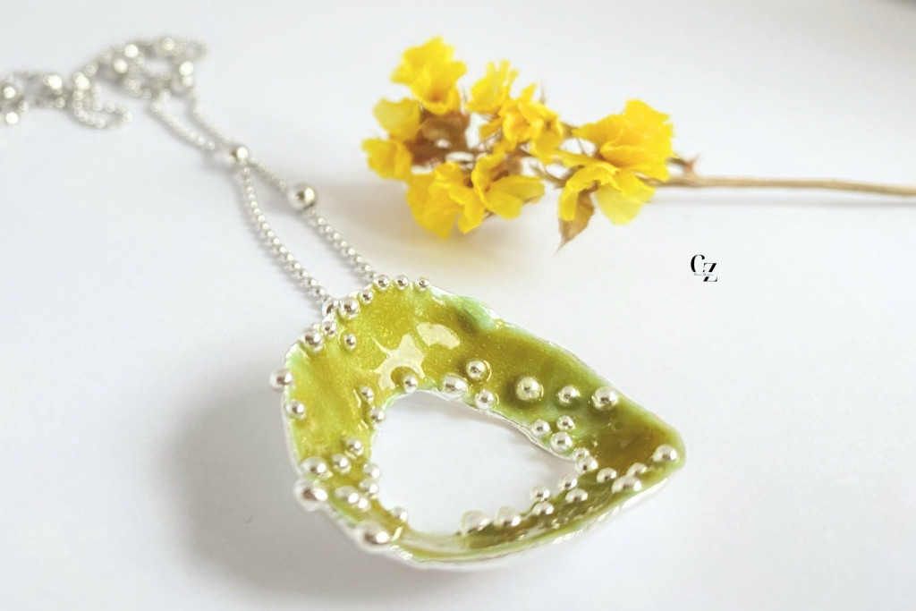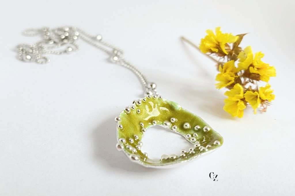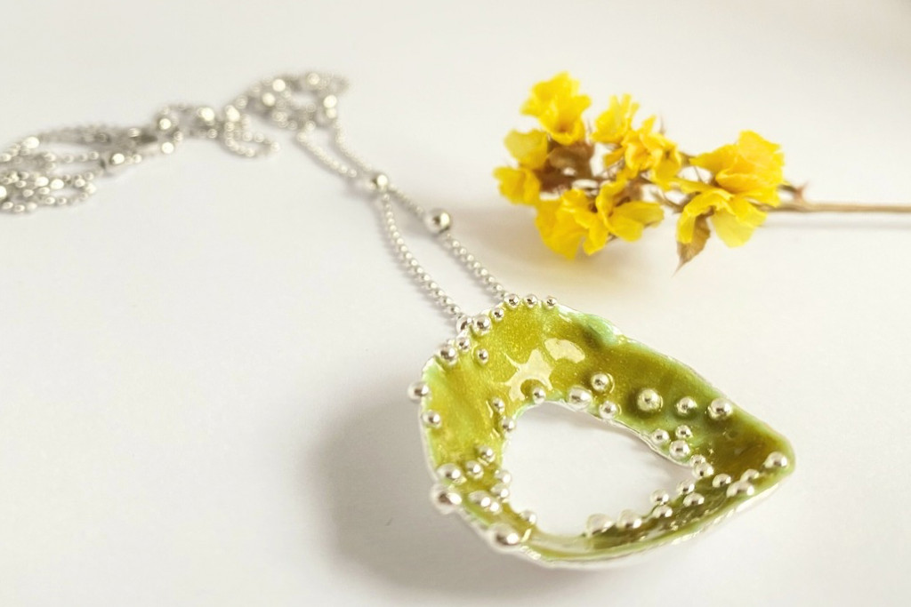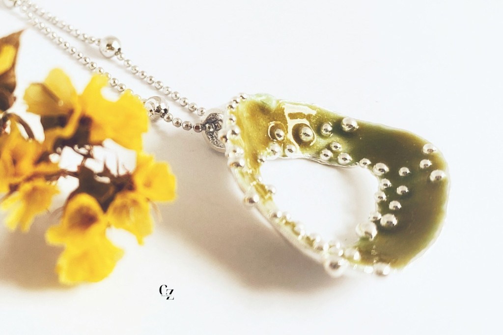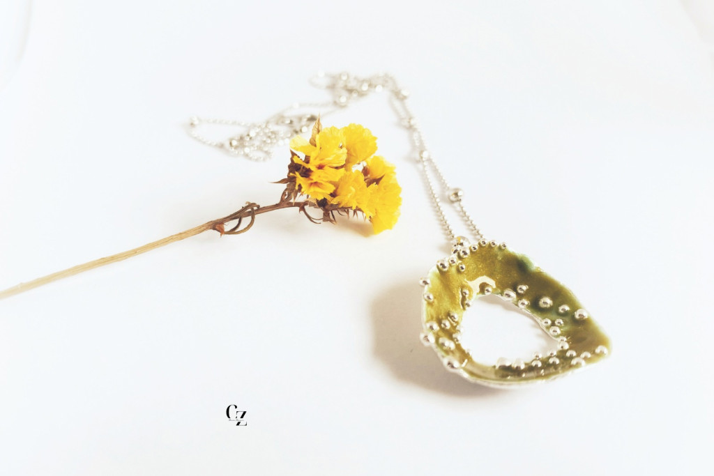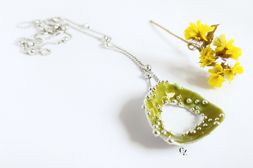 Bubble Bloom medál olivazöld és lánc