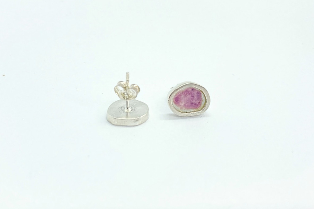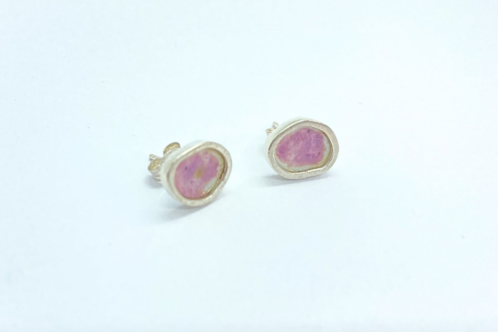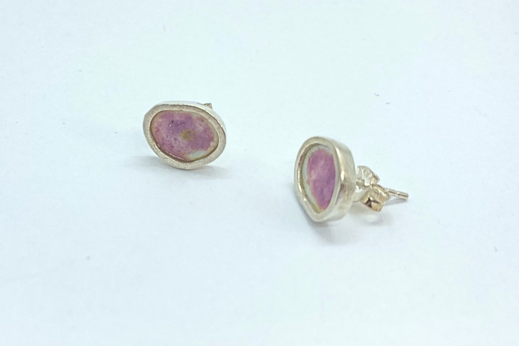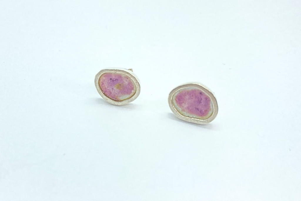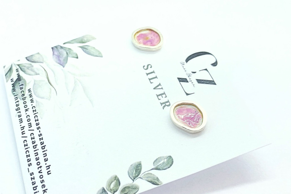 Freeform ezüst tűzzománc fülbevaló rózsaszín (nagy)