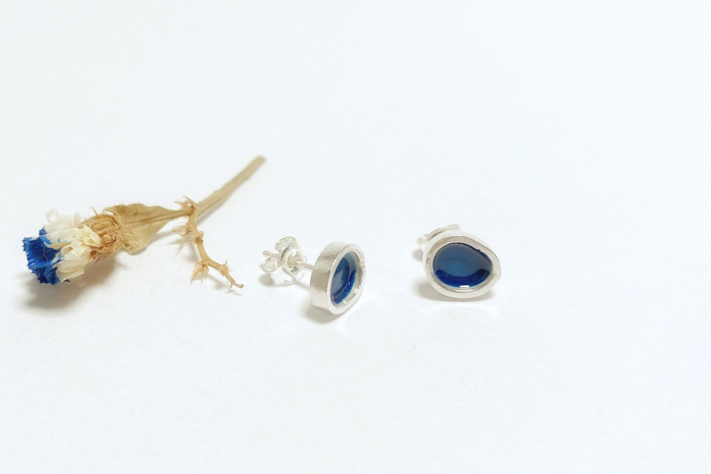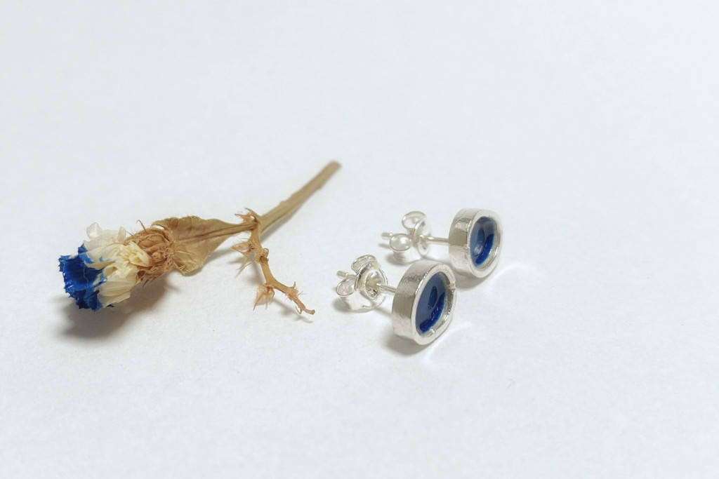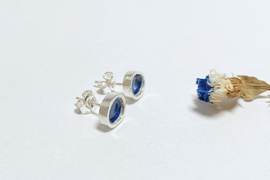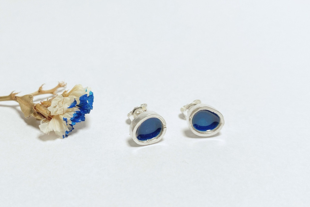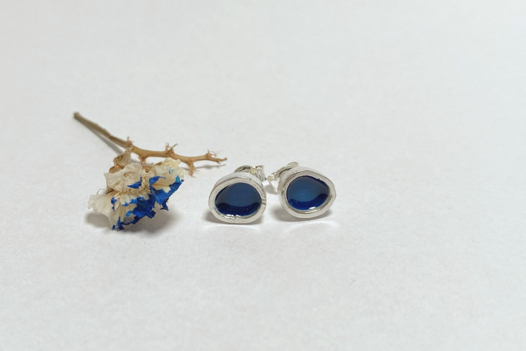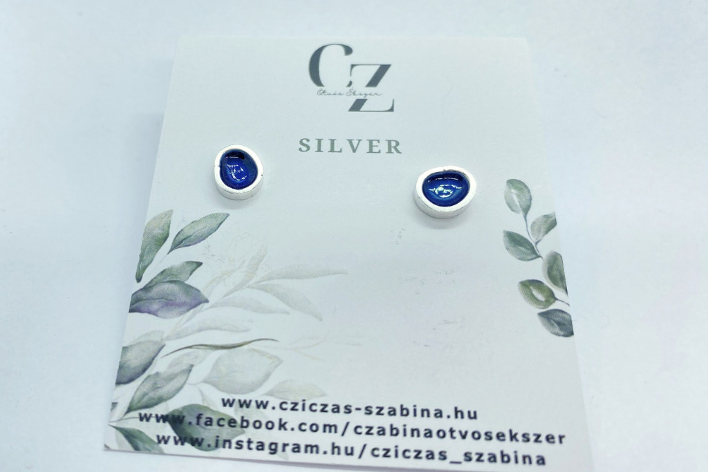 Freeform ezüst tűzzománc fülbevaló sötétkék