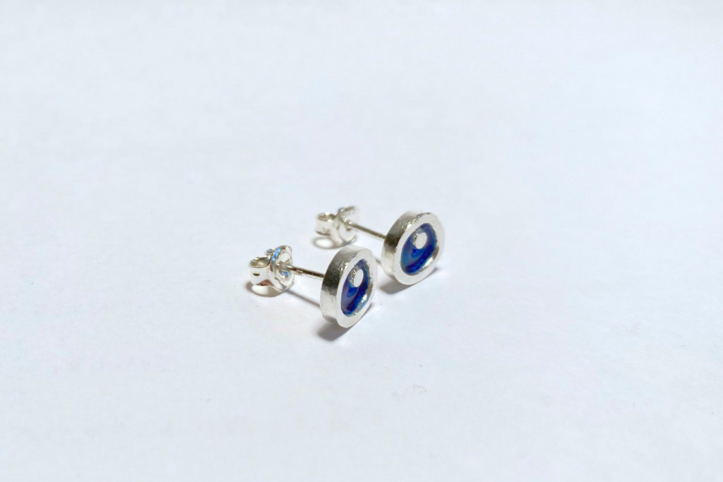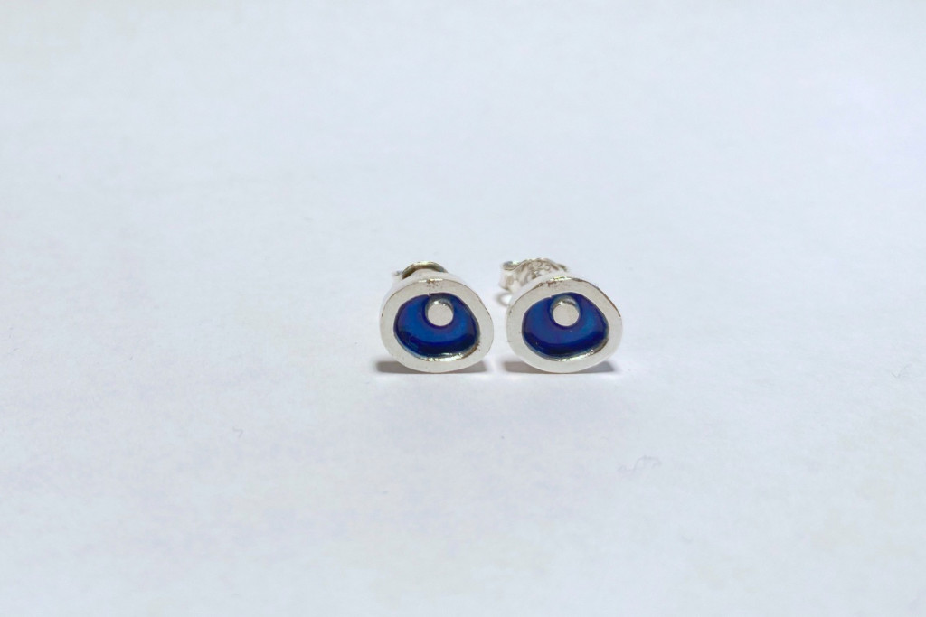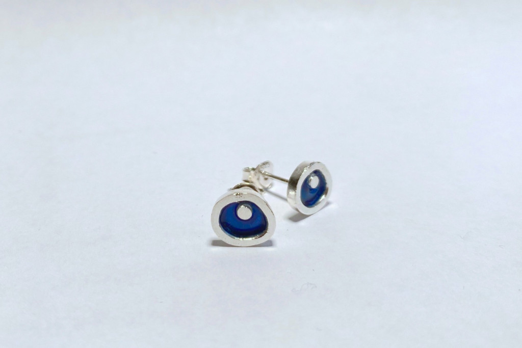 Freeform ezüst tűzzománc fülbevaló sötétkék