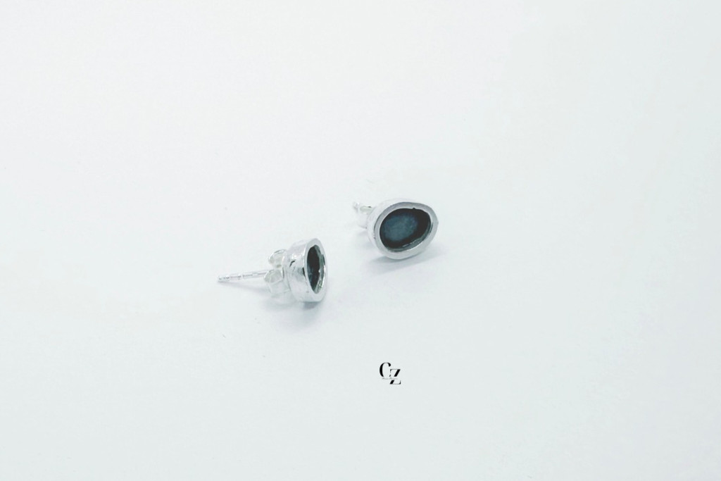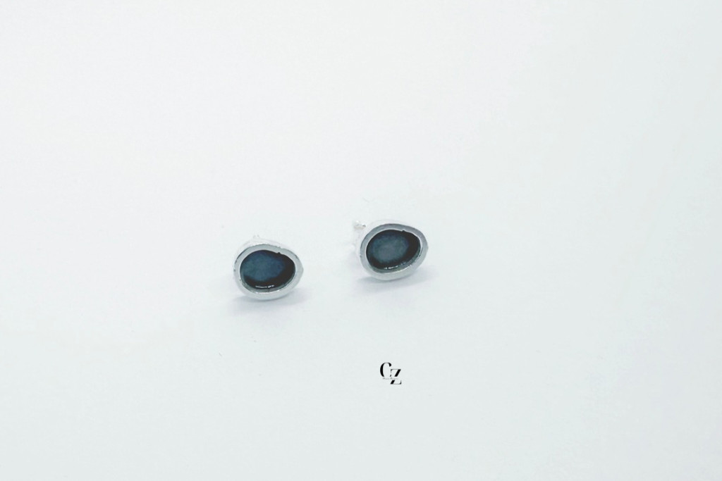 Freeform ezüst tűzzománc fülbevaló sötétszürke