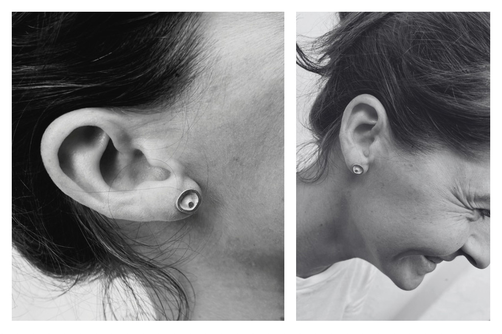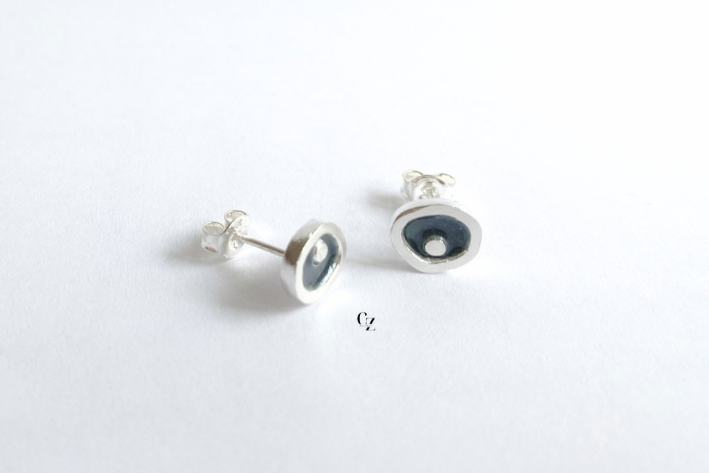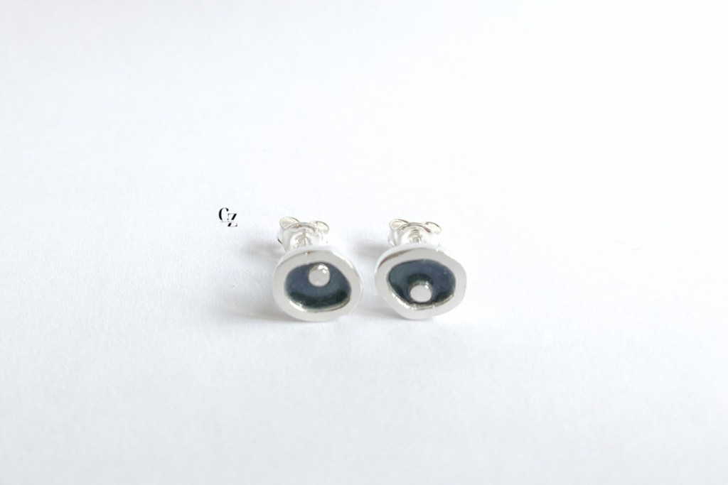 Freeform ezüst tűzzománc fülbevaló sötétszürke