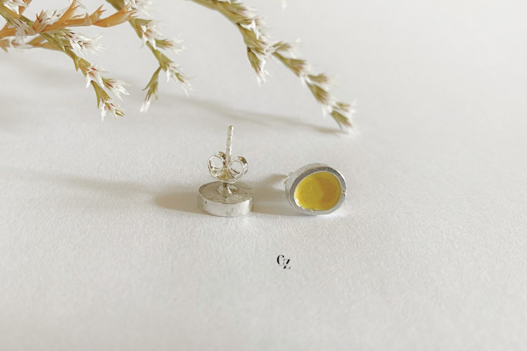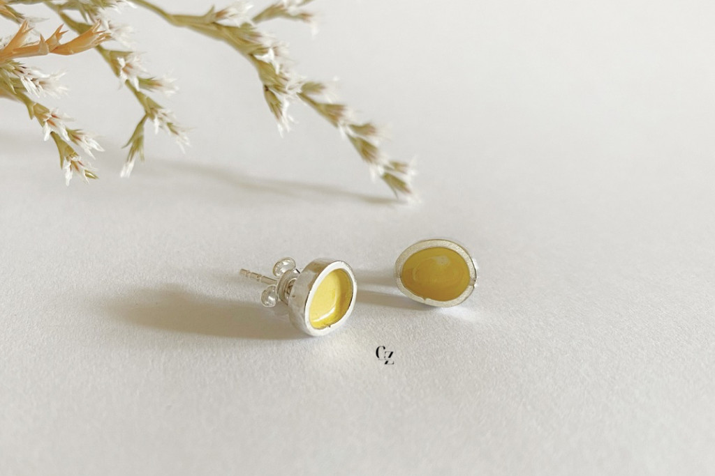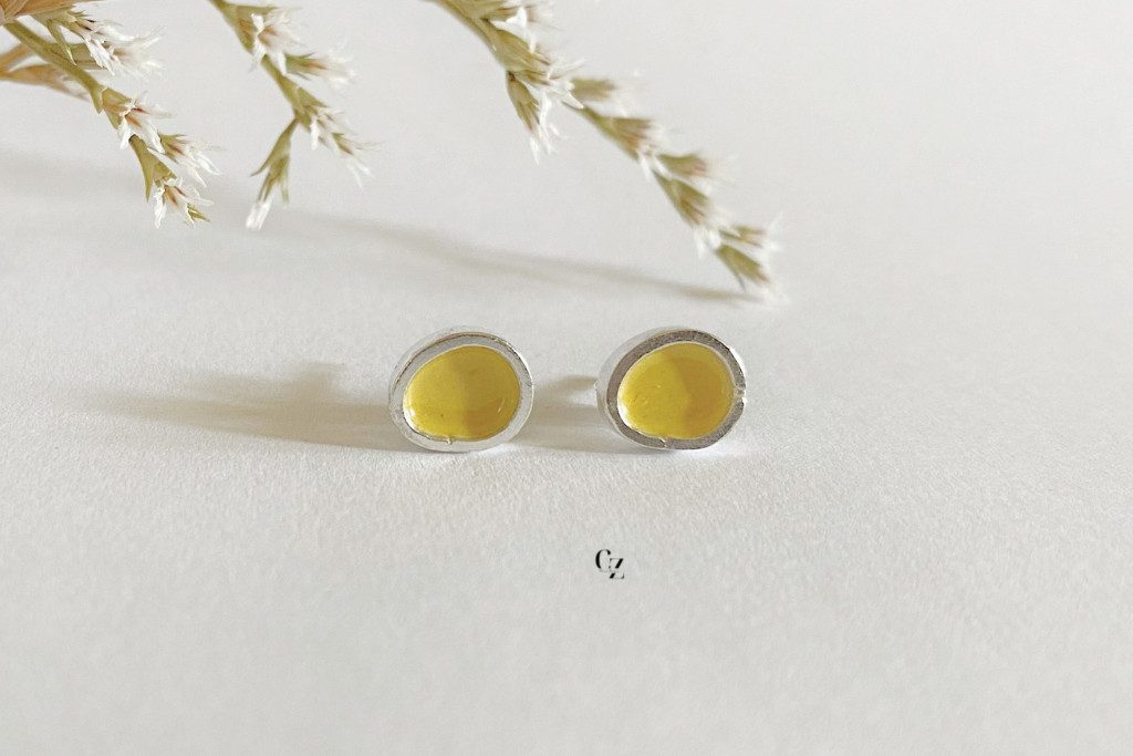 Freeform ezüst tűzzománc fülbevaló tojássárga