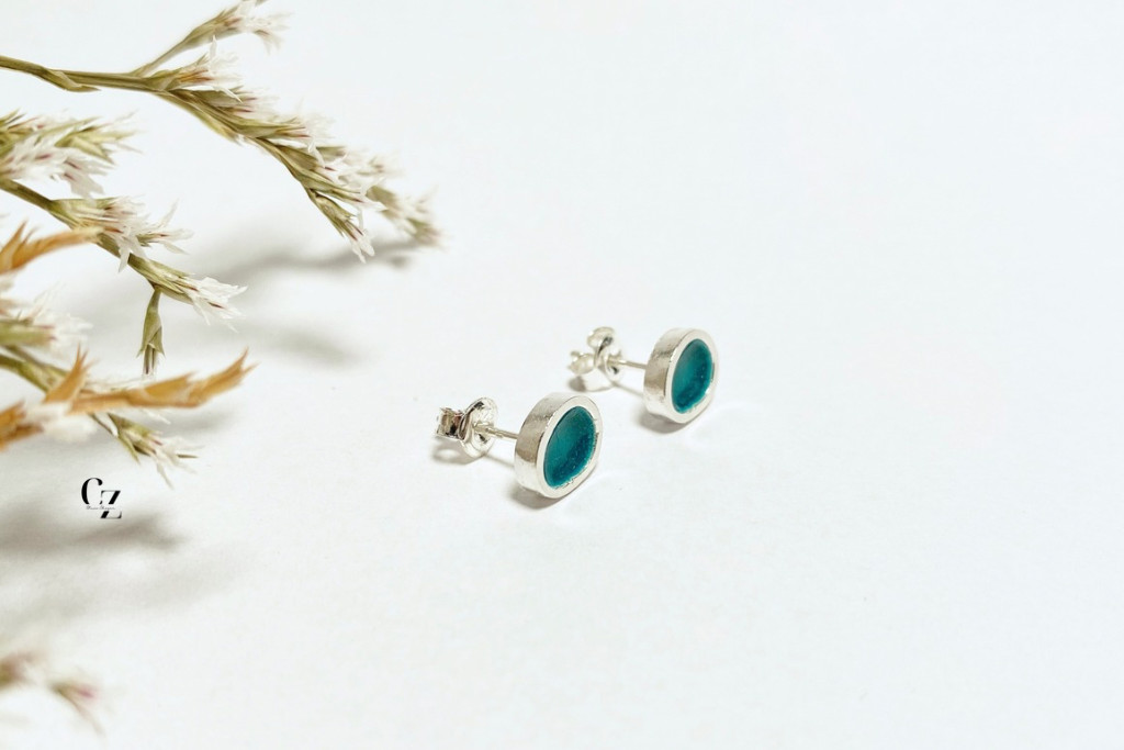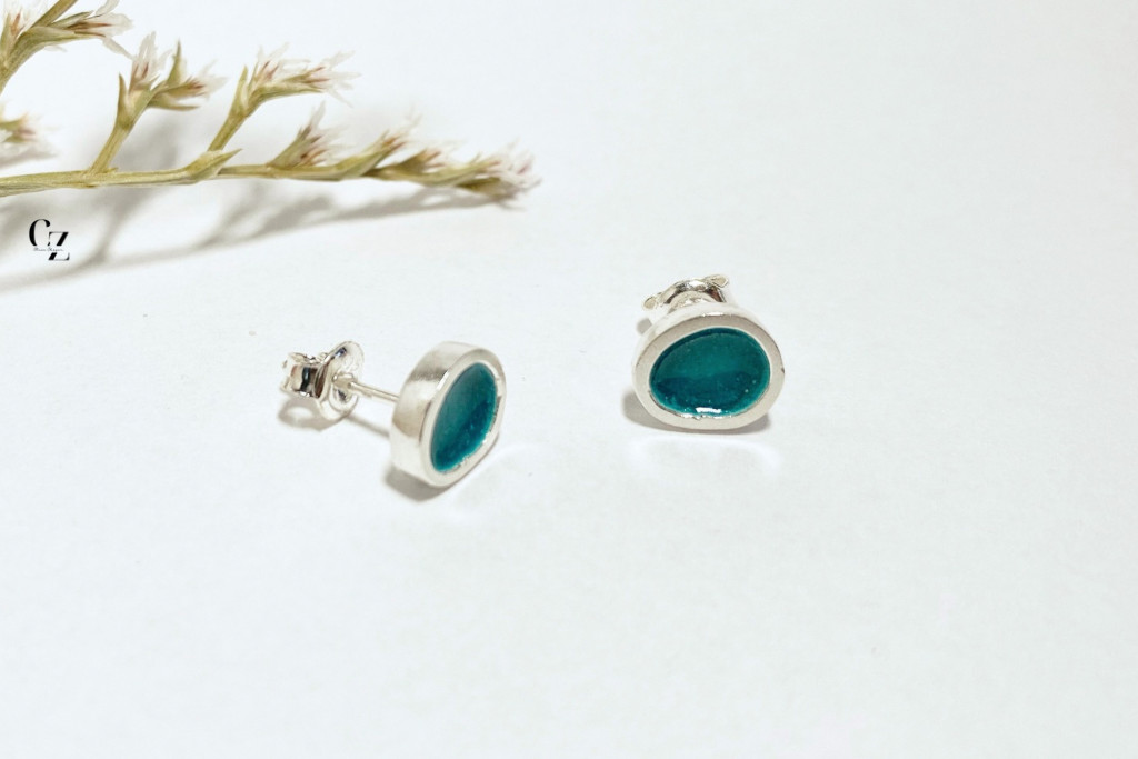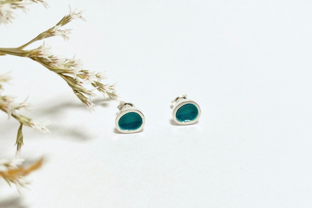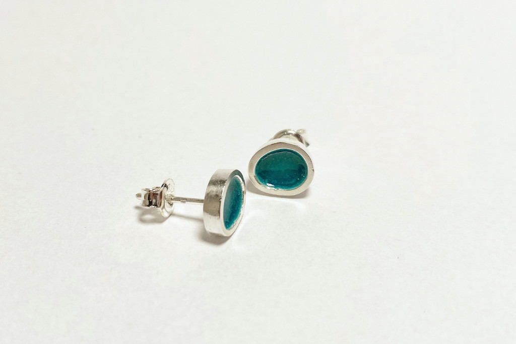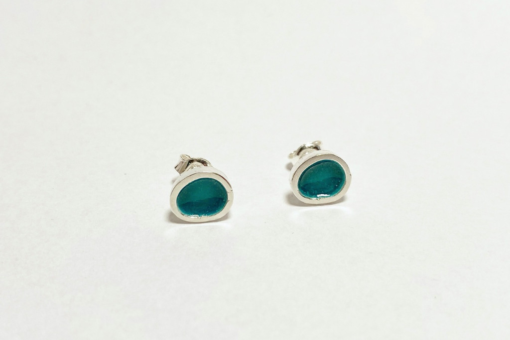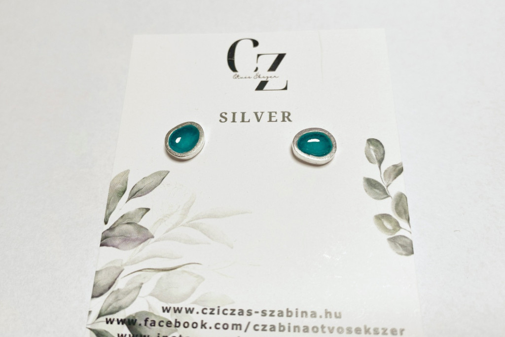 Freeform ezüst tűzzománc fülbevaló türkizzöld