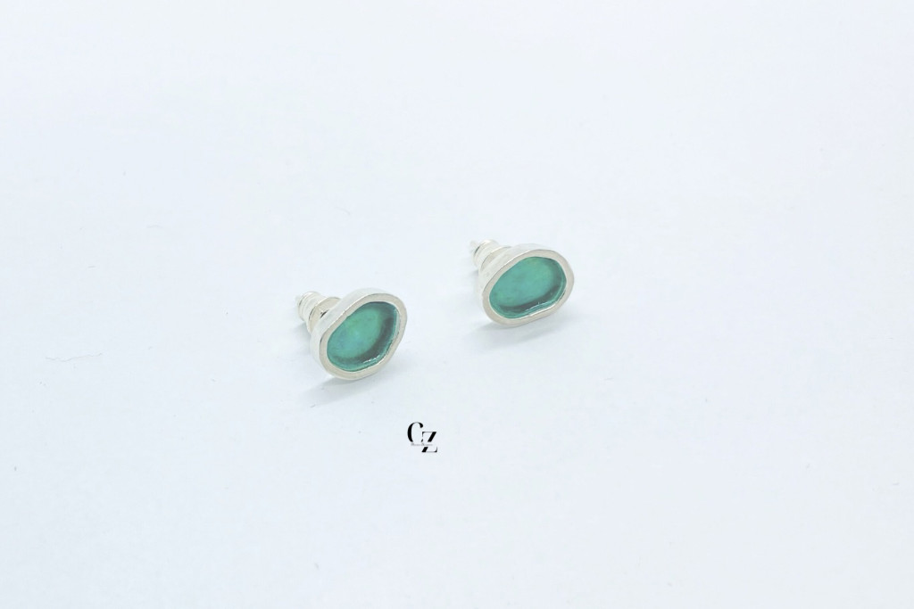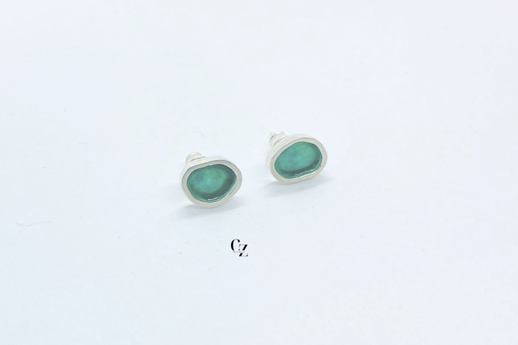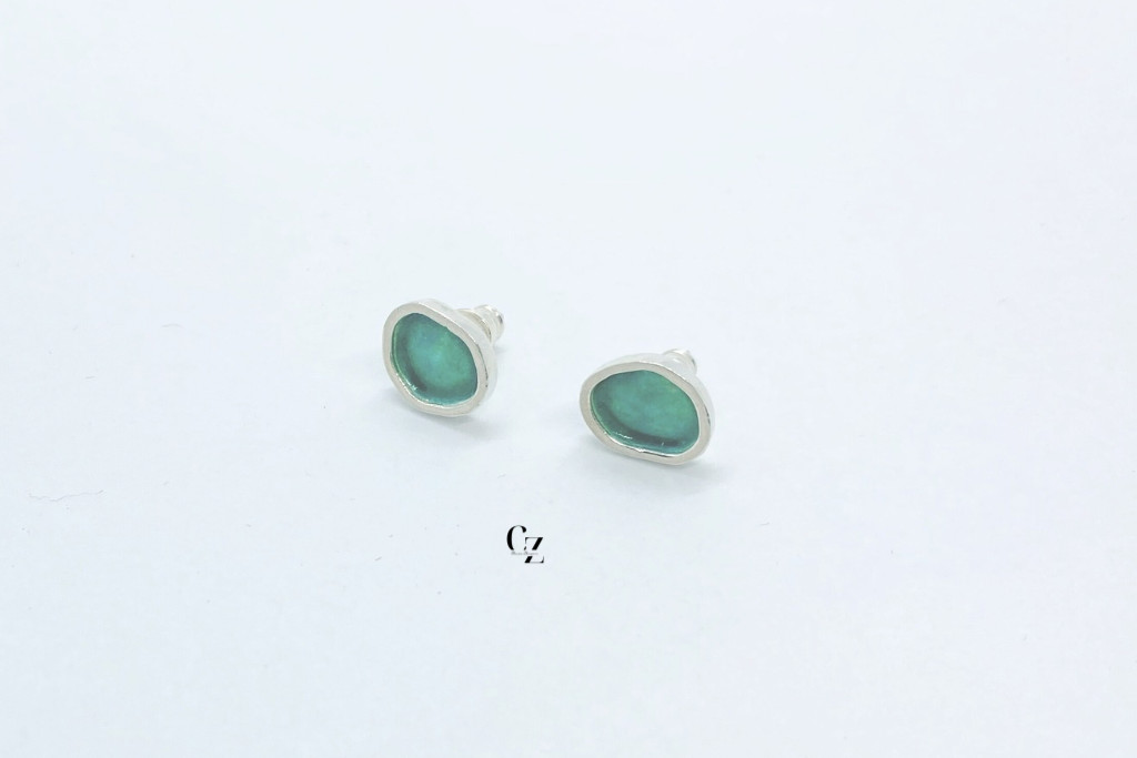 Freeform ezüst tűzzománc fülbevaló türkizzöld (nagy)