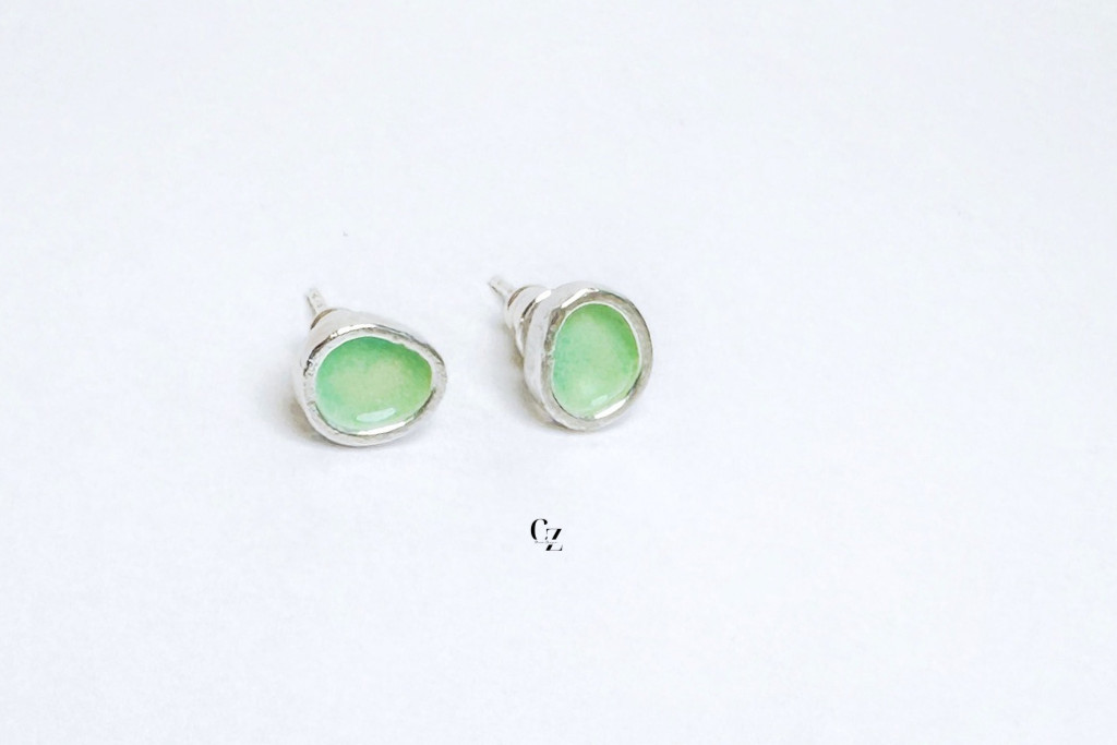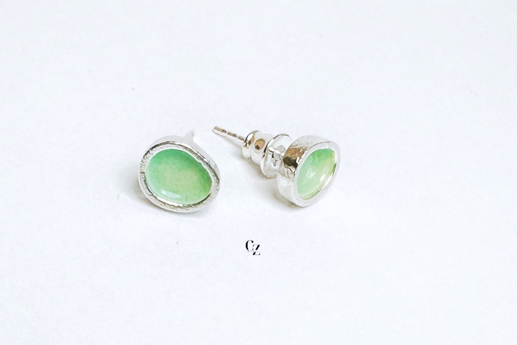 Freeform ezüst tűzzománc fülbevaló világoszöld