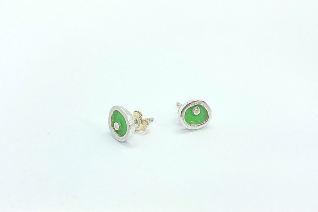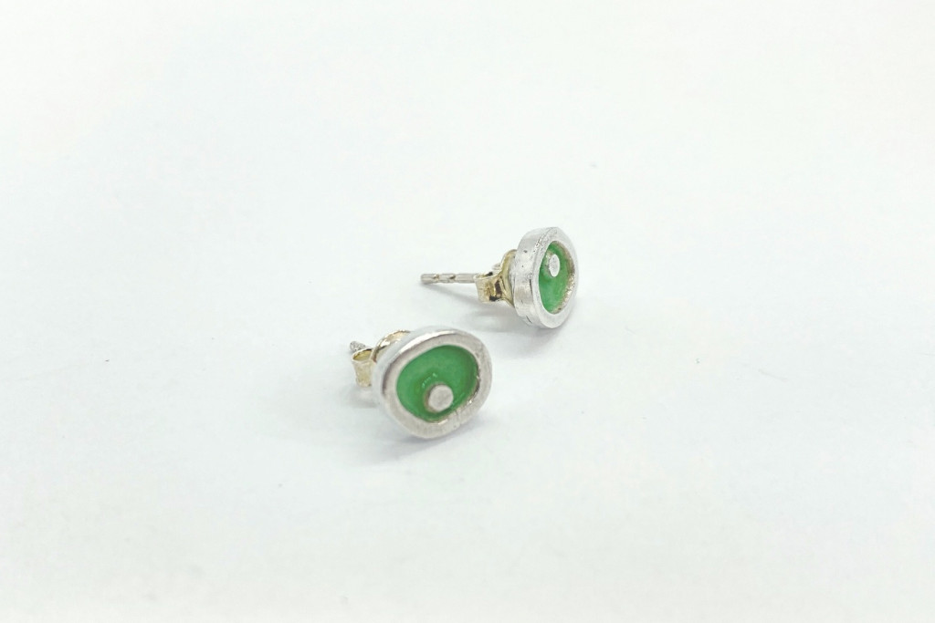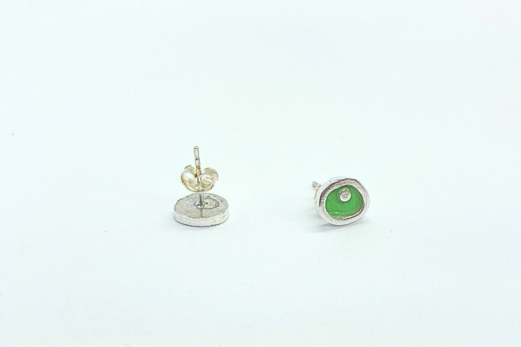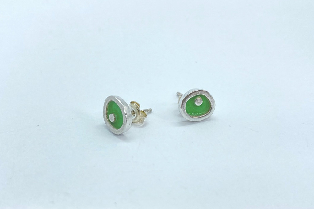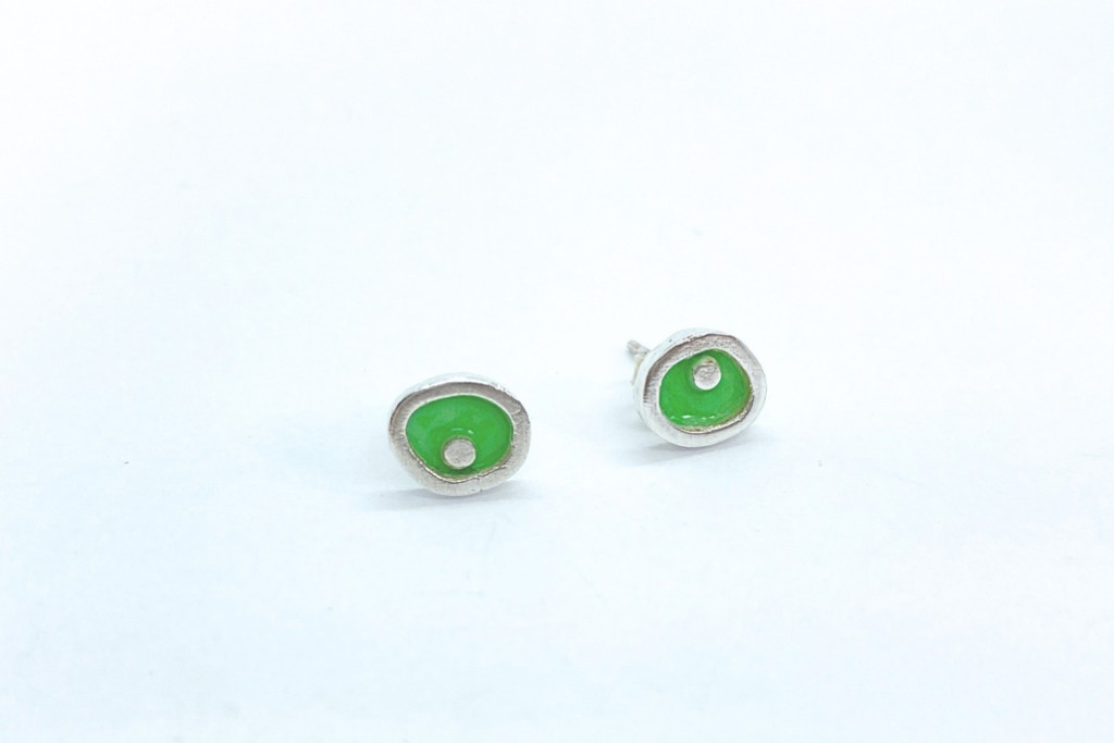 Freeform ezüst tűzzománc fülbevaló világoszöld