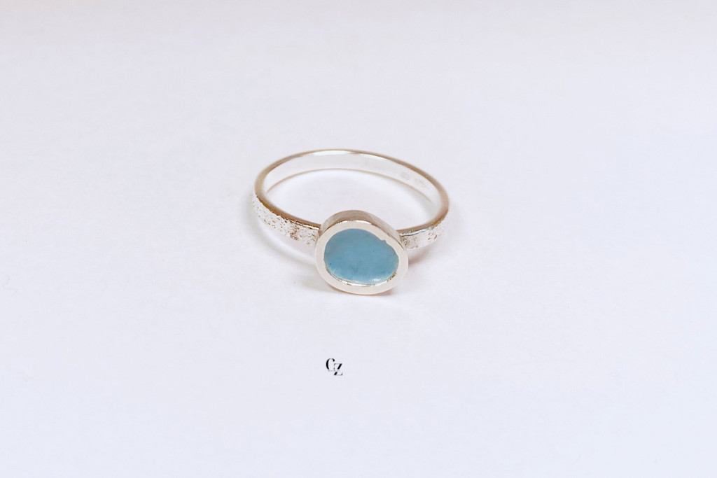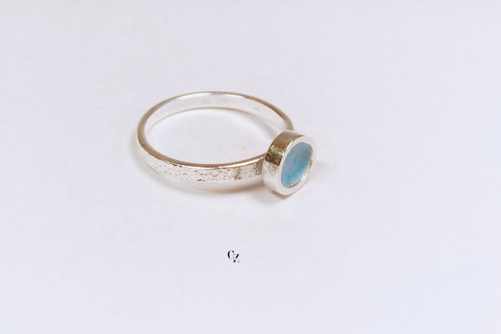 Freeform ezüst tűzzománc gyűrű világos kék(18mm)