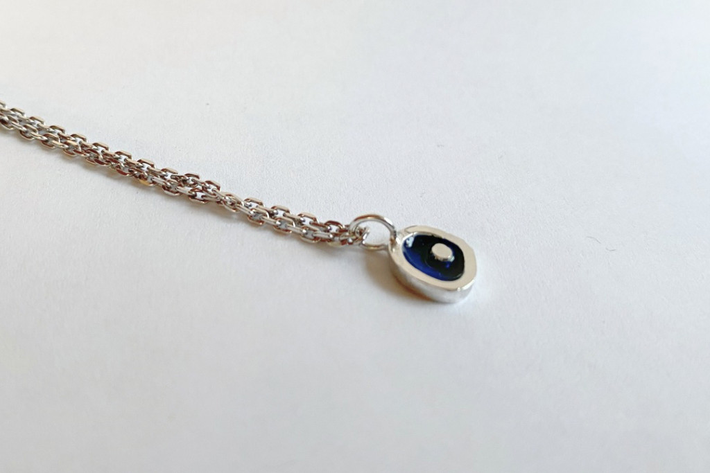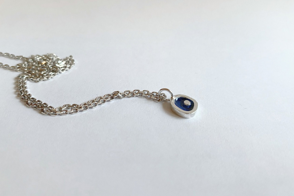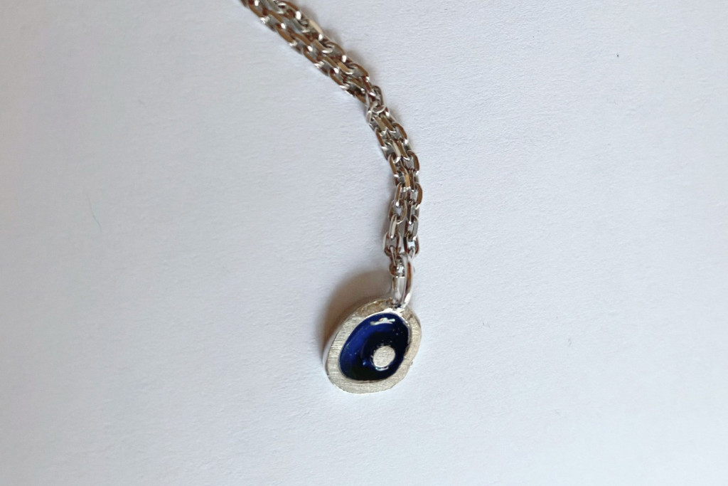 Freeform ezüst tűzzománc medál sötétkék- ezüst lánccal
