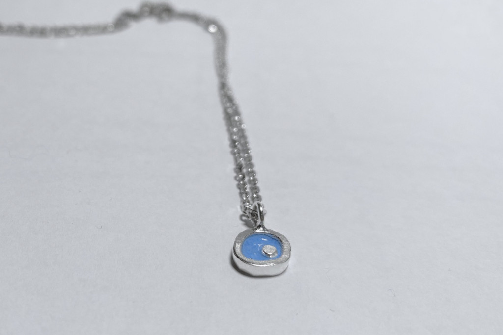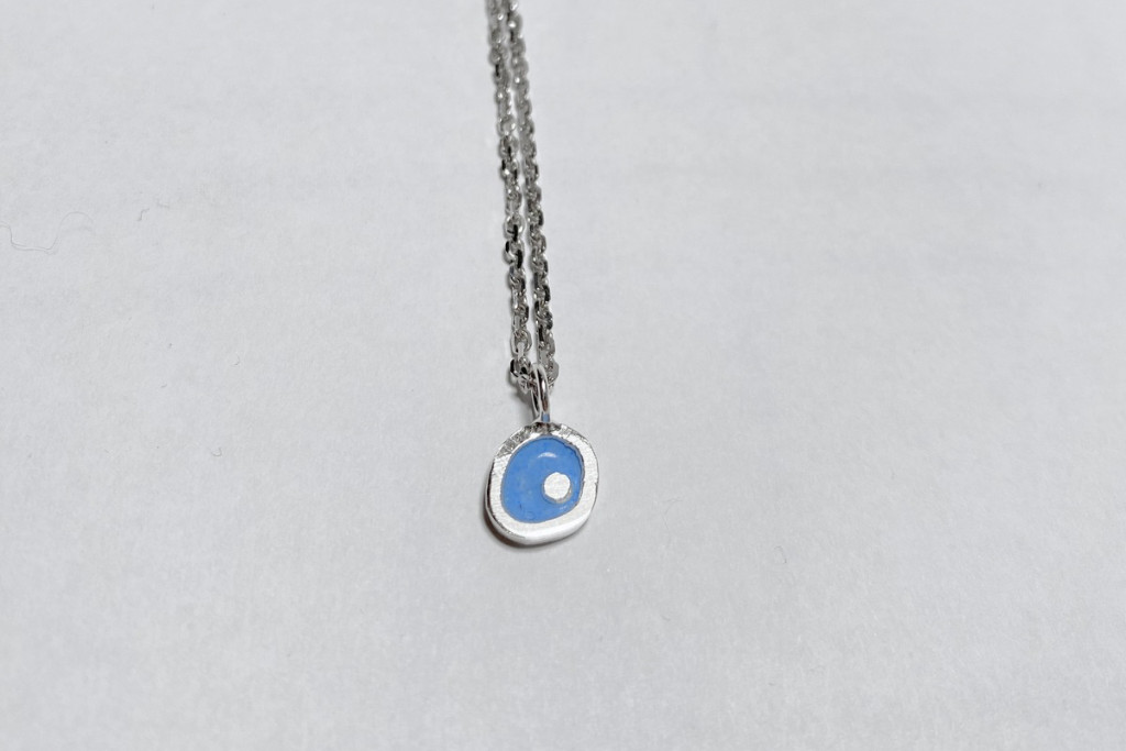 Freeform ezüst tűzzománc medál világoskék- ezüst lánccal