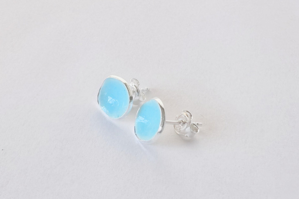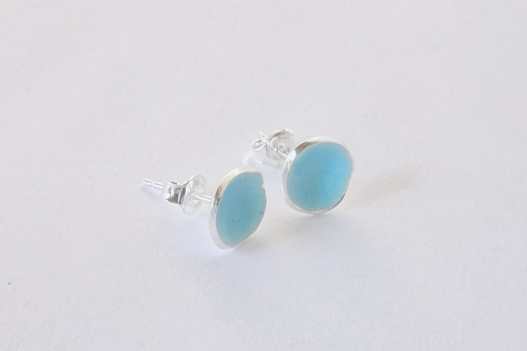 Minimelt ezüst tűzzománc fülbevaló égkék