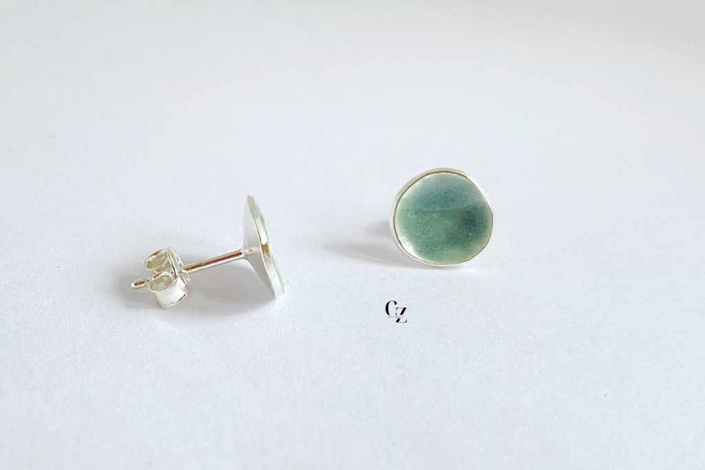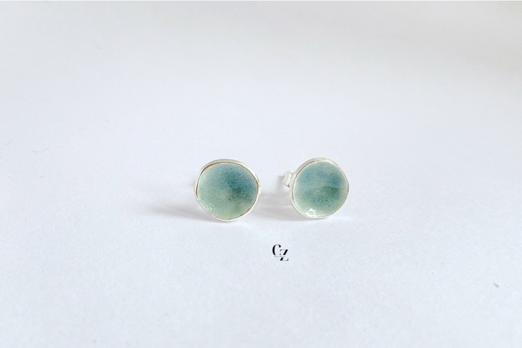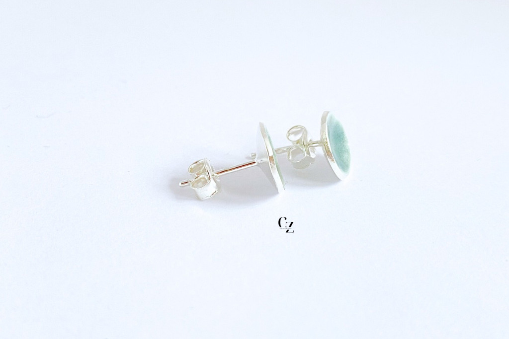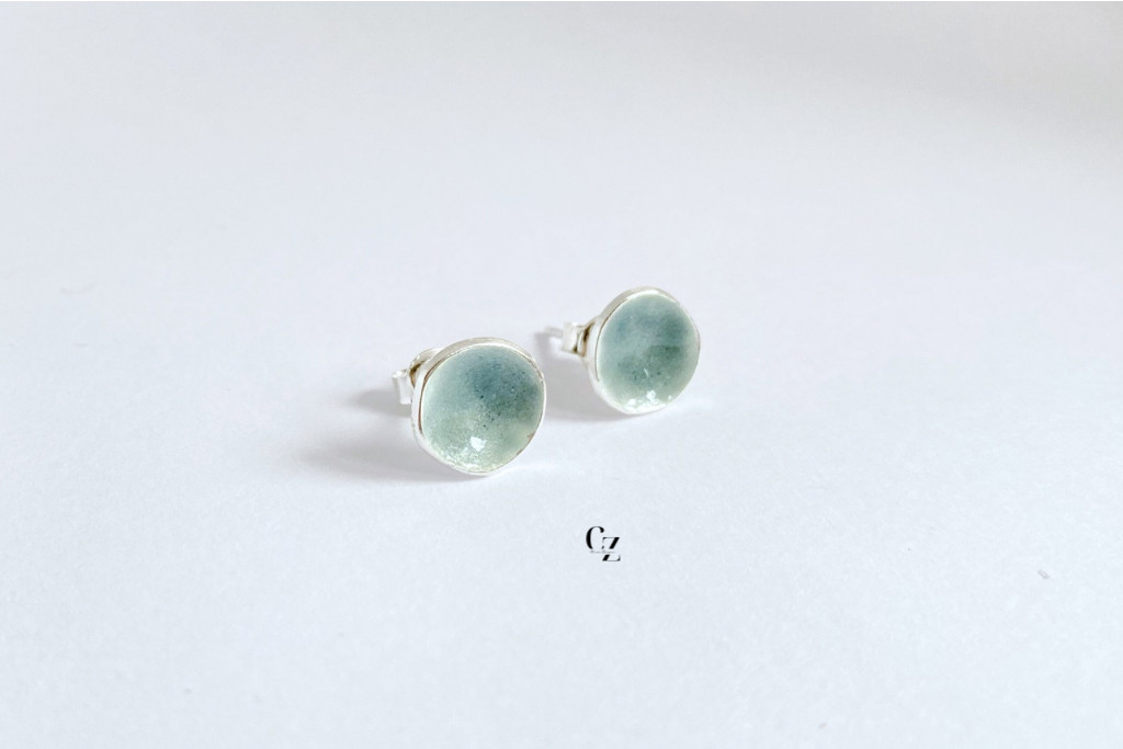 Minimelt ezüst tűzzománc fülbevaló sötét szürke