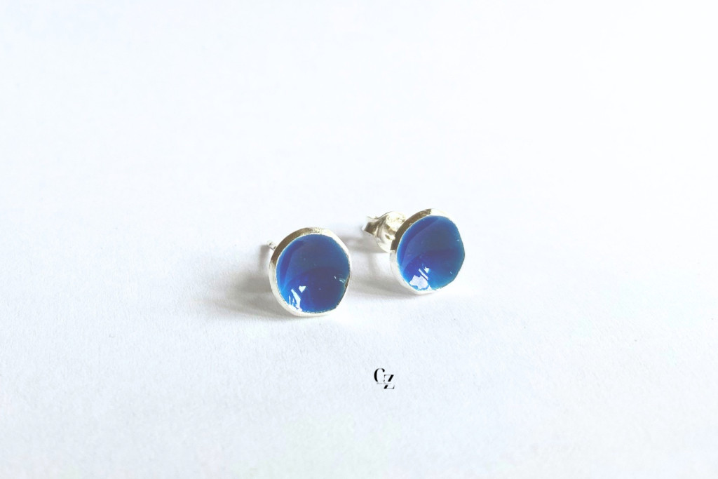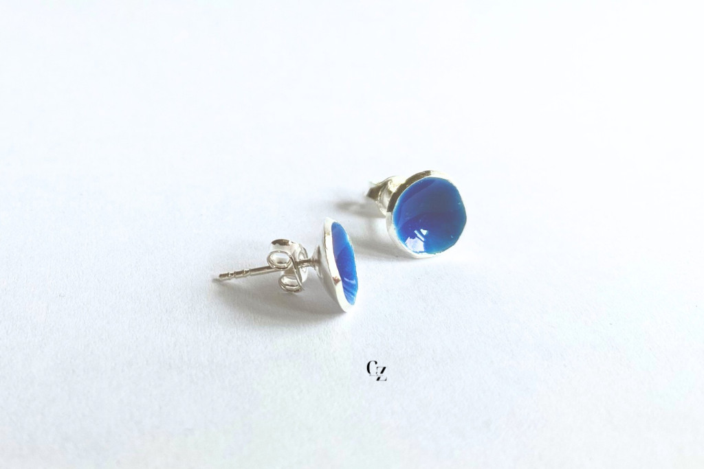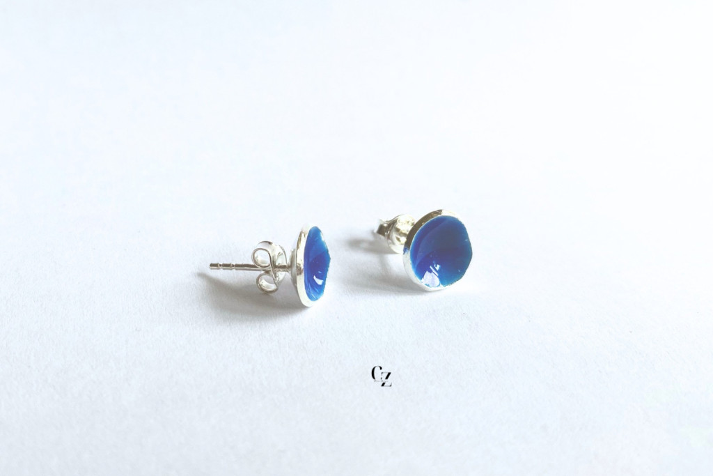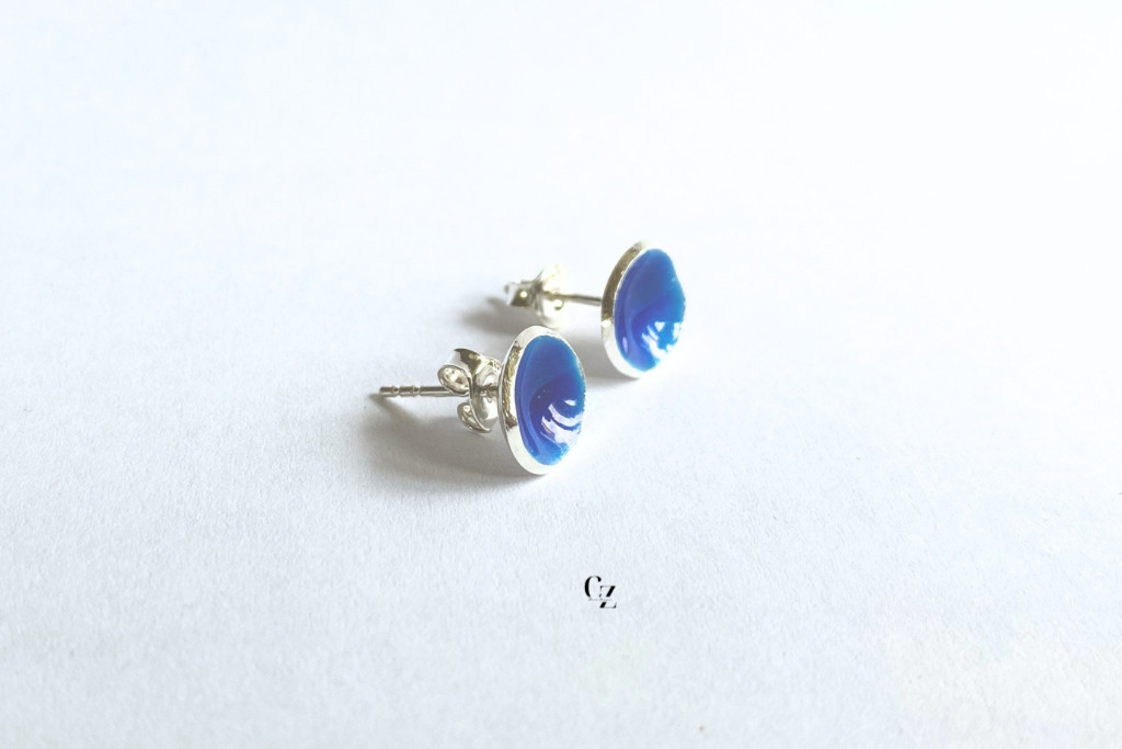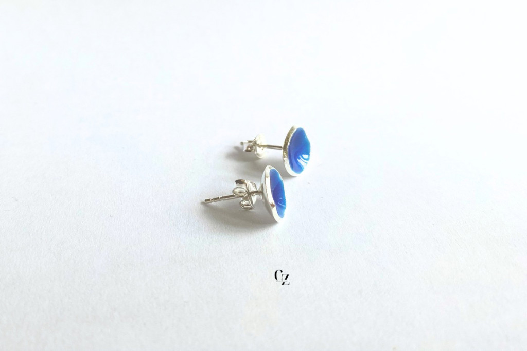 Minimelt ezüst tűzzománc fülbevaló sötétkék