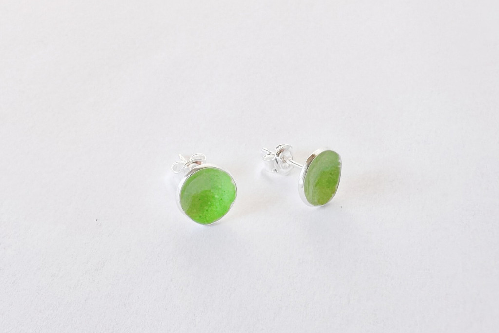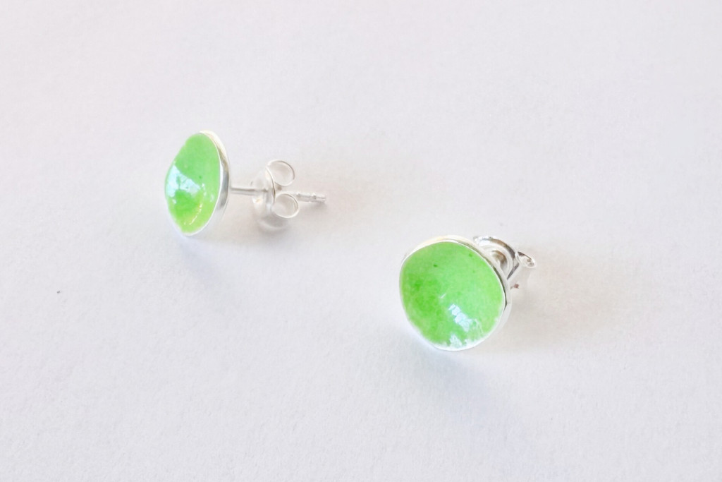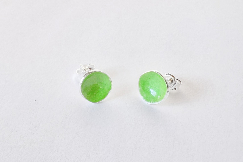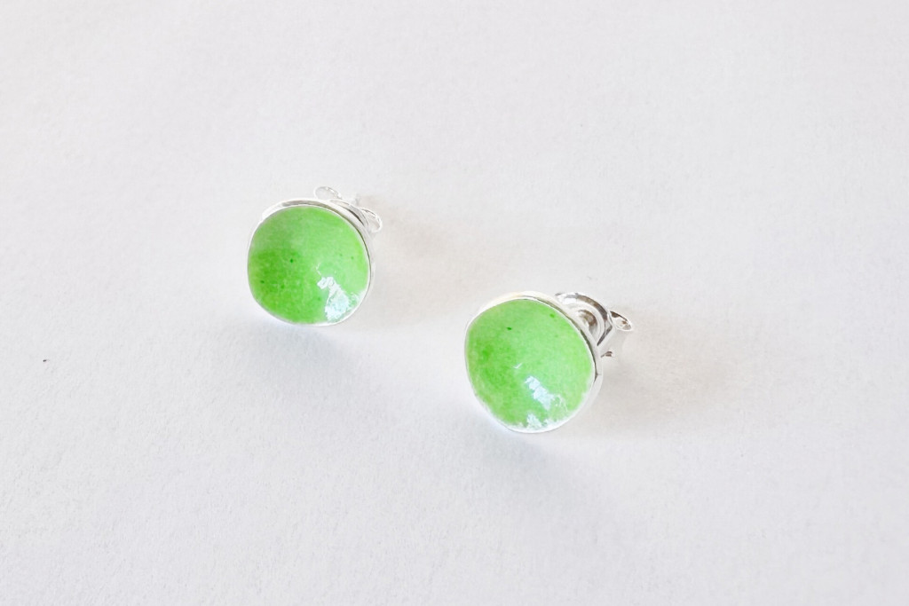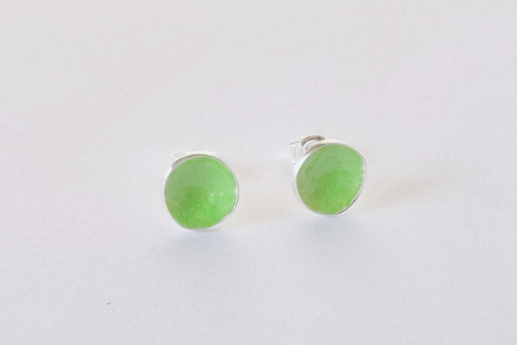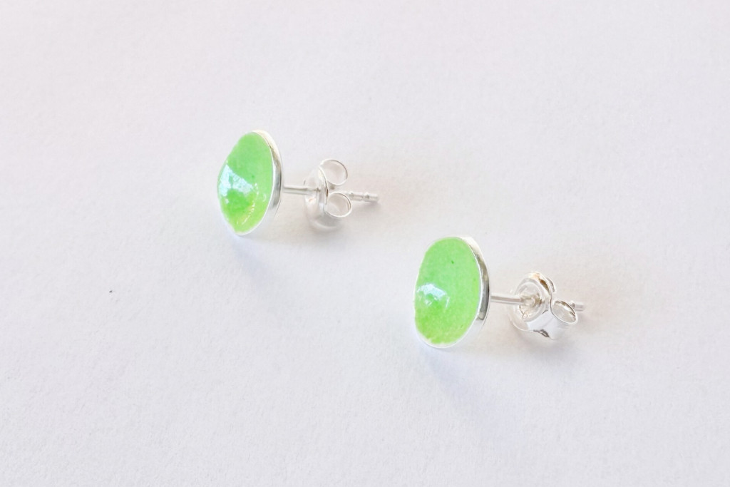 Minimelt ezüst tűzzománc fülbevaló világoszöld