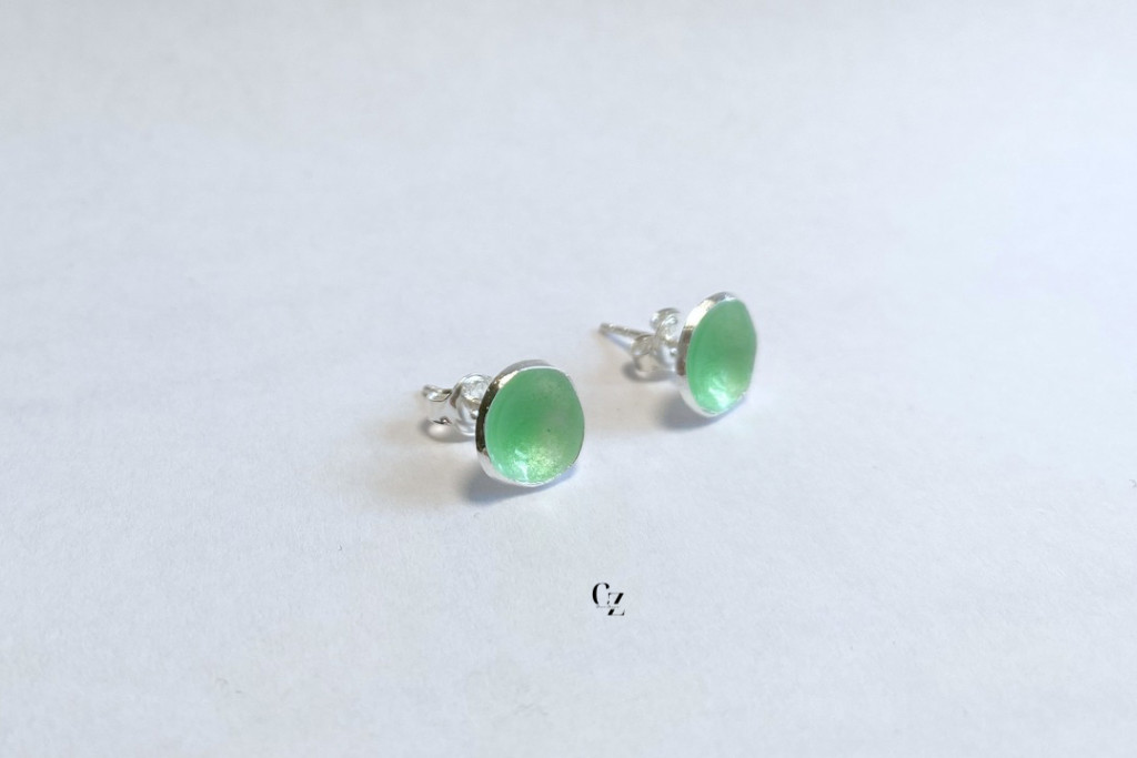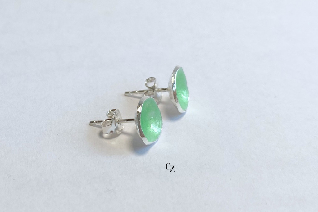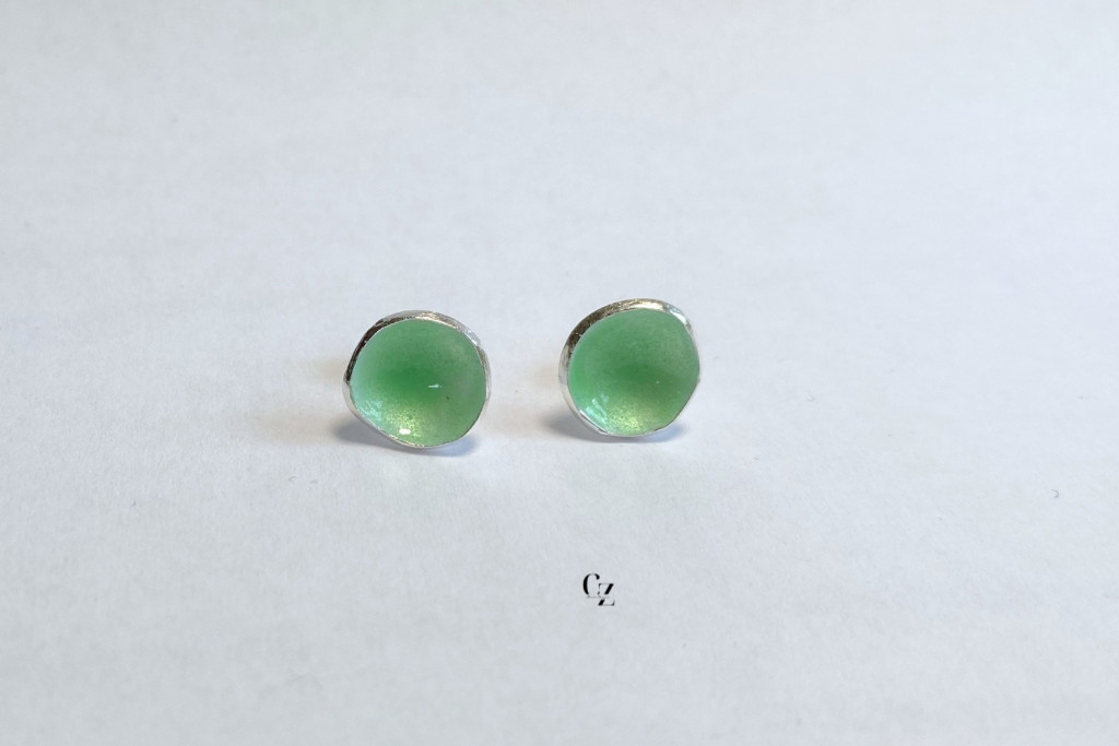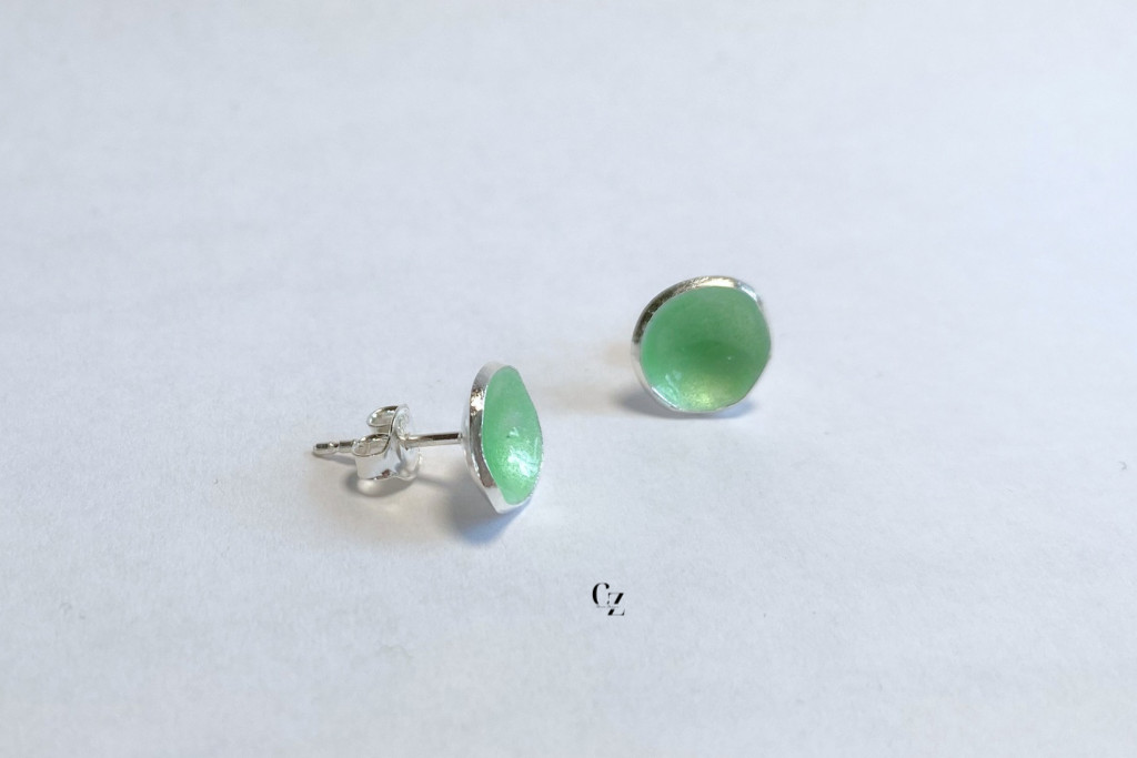Minimelt ezüst tűzzománc fülbevaló világoszöld