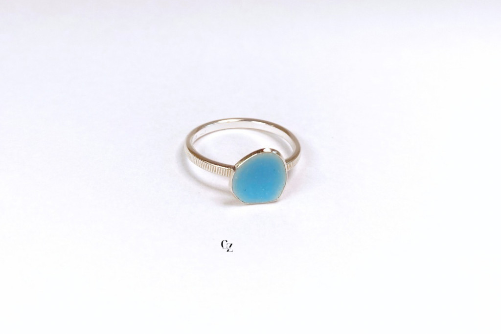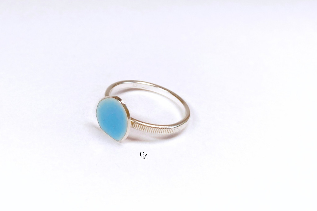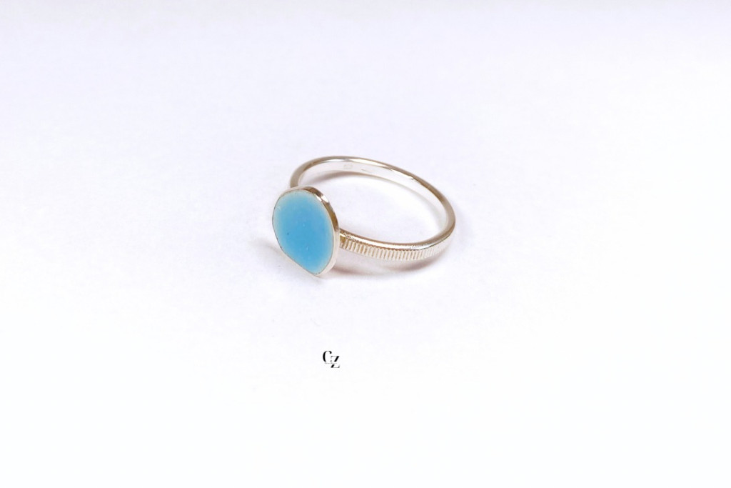 Minimelt ezüst tűzzománc gyűrű kék(18mm)