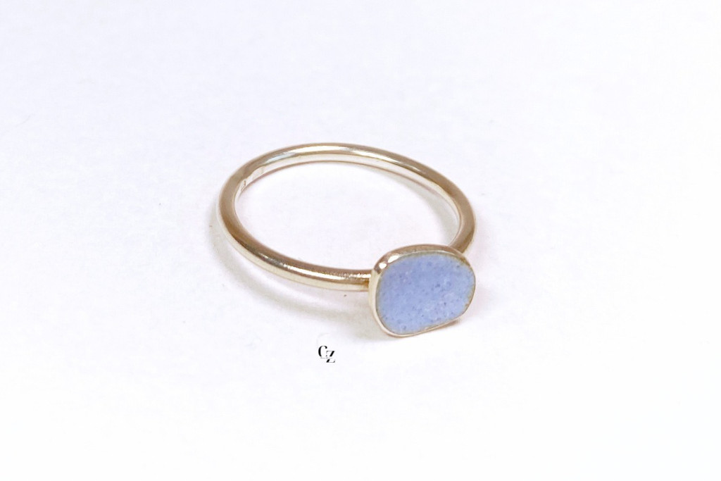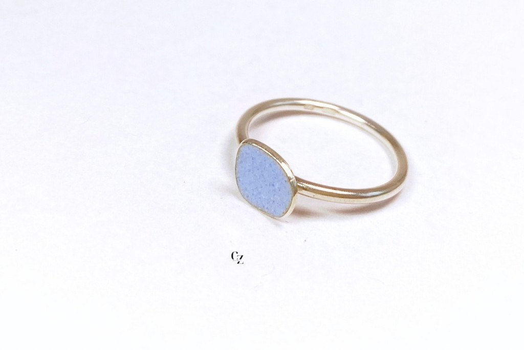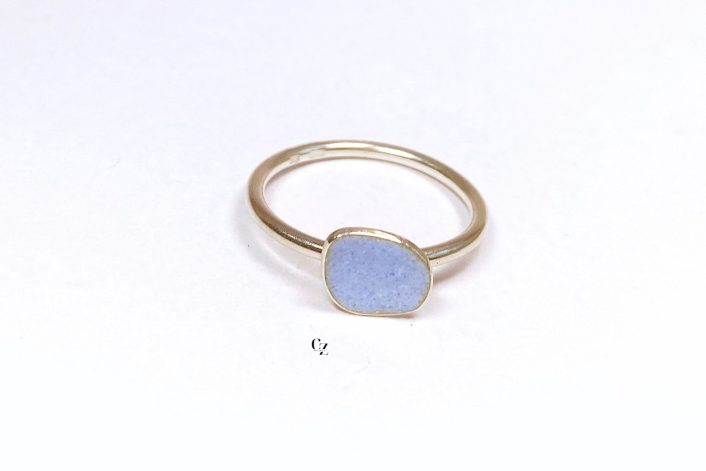 Minimelt ezüst tűzzománc gyűrű  kék(17mm)